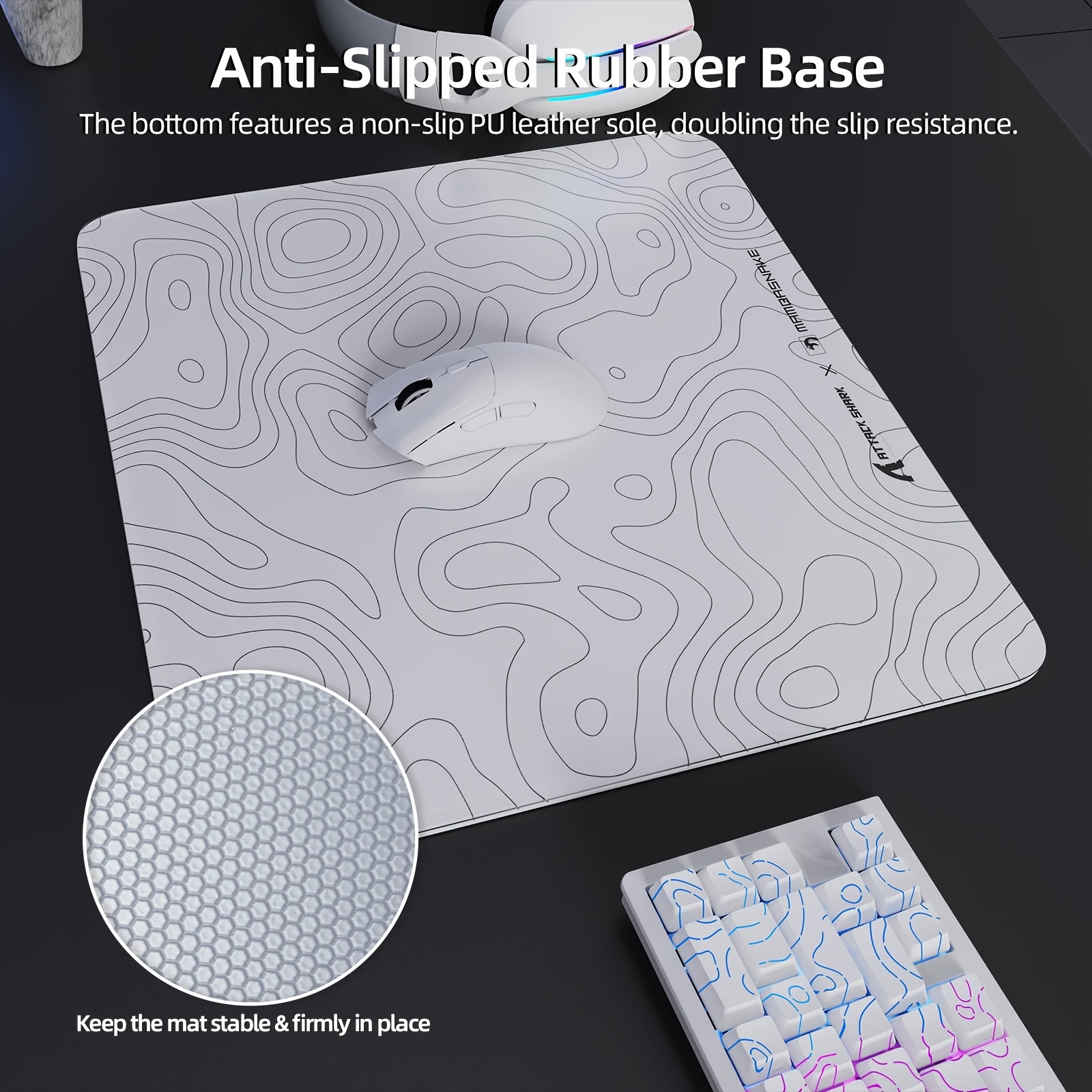 ATTACK SHARK CM05 Gaming Mouse Pad | 9H Tempered Glass Surface | Ultra-Smooth, Shock-Absorbing, Scratch-Resistant, Non-Slip Base | Ergonomic Design for Precision Gaming | 45x40cm, Black with White Abstract Pattern