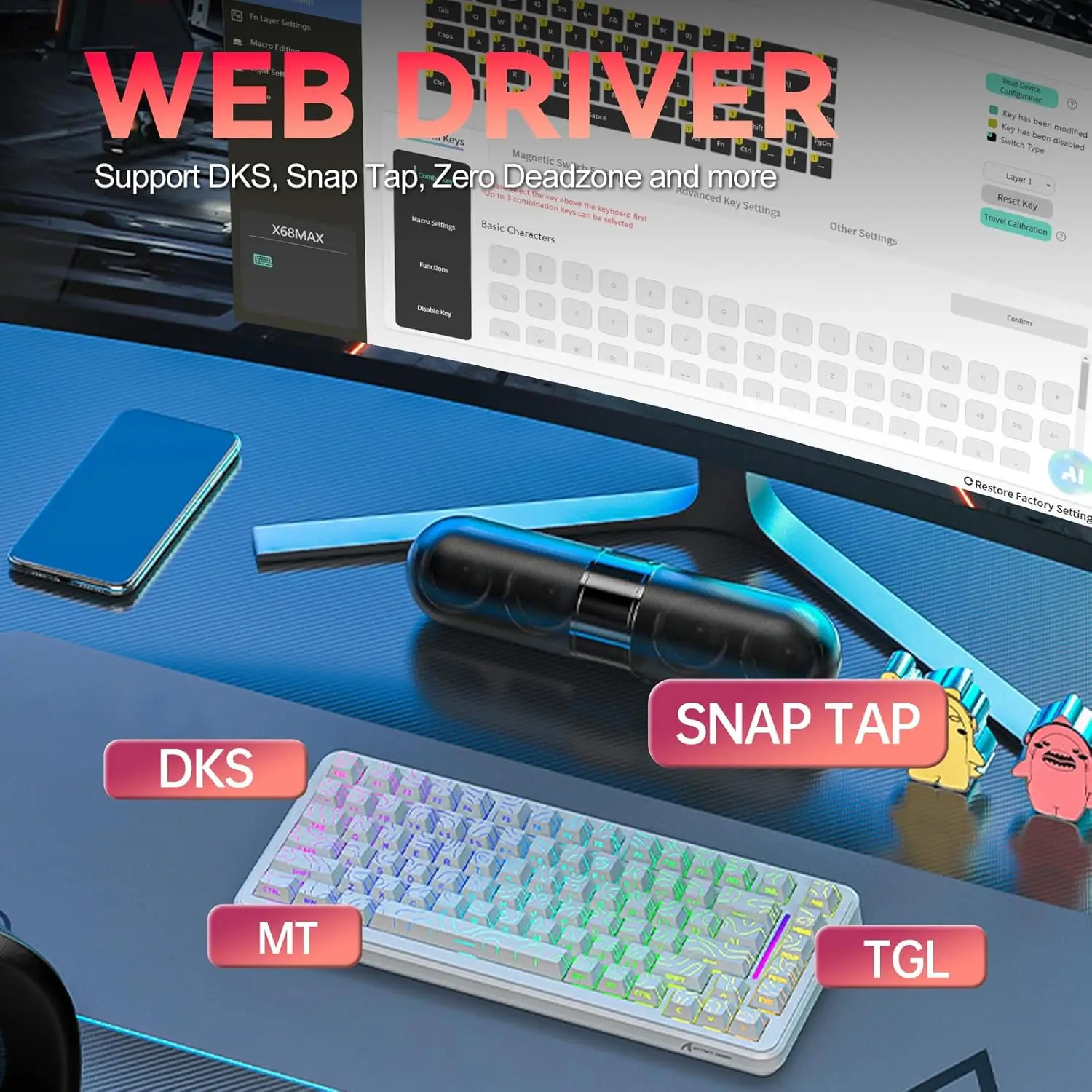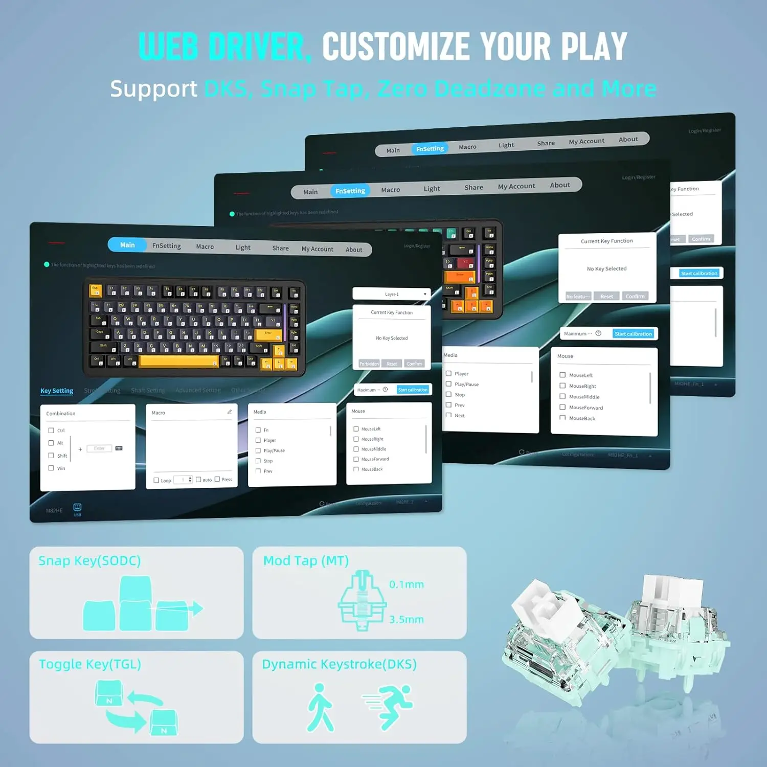 Home Keyboards MAMBASNAKE M82 HE (RT/ST/DKS) + Coiled Cable -8%MAMBASNAKE M82 HE (RT/ST/DKS) + Coiled Cable25900 د.ج Original price was: 25900 د.ج.23900 د.جCurrent price is: 23900 د.ج. MAMBASNAKE M82 HE (RT/ST/DKS) + Coiled Cable quantity Add to cartMAMBASNAKE M82 HE Hall Effect Magnetic Switch 75% Rapid Trigger Gaming Keyboard75% Layout Wired 8KHz Magnetic Keyboard With 0.01mm RT Accuracy, Support RT/Snap Tap/DKS/MT/TGL. Category: Keyboards Description Related productsStock OutWOMIER SK80 White Switch + Mousepad 80*30 CM 19900 د.ج Original price was: 19900 د.ج.17500 د.جCurrent price is: 17500 د.ج. Read more Stock OutAJAZZ AK820 MAX 8Khz – RAPID TRIGGER 23900 د.ج Read more AULA HERO 68 HE (8000Hz / 0.01RT) 22900 د.ج Add to cart Stock OutMUCAI MKA610 – Red Switch 6900 د.ج Read more